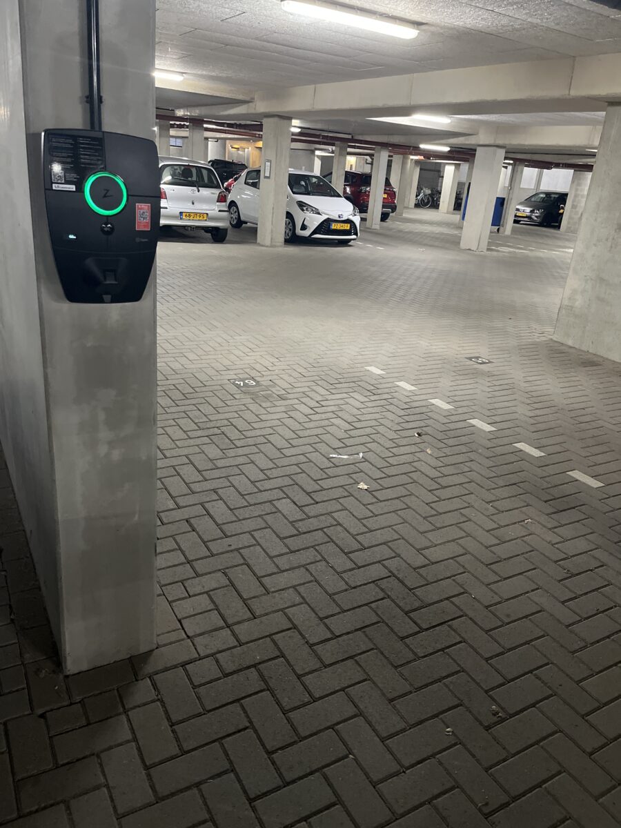 Laadsnel heeft een vlakbandkabel aangelegd langs de parkeerplaatsen in de garage. Deze kabel vormt de basis voor toekomstige uitbreiding: op elk gewenst moment kan op iedere parkeerplaats een laadpunt worden aangesloten zonder dat de garage opnieuw opengebroken hoeft te worden.